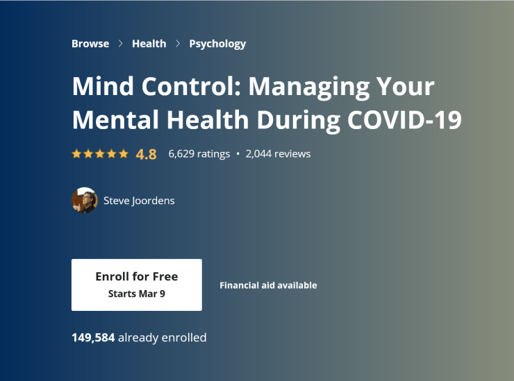 Prepared by the University of Toronto, this online course consists of four sessions and eleven videos that will teach you how to relax your mind and effectively manage your mental health.